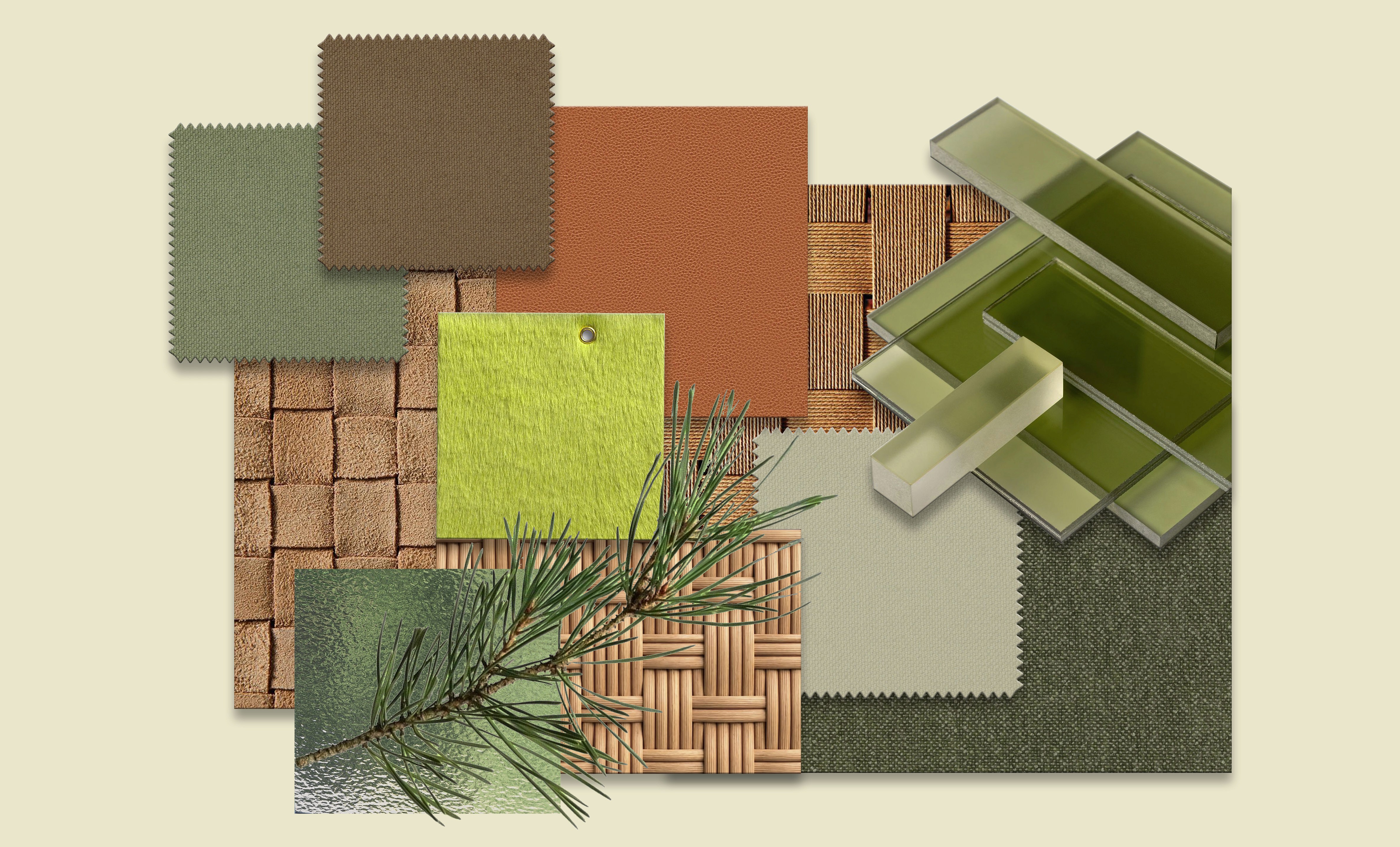 A selection of materials designed around the project’s concept, where the outdoors and its natural landscape blend seamlessly with the interiors through furniture and textures.